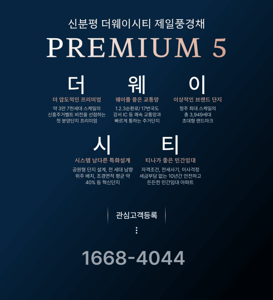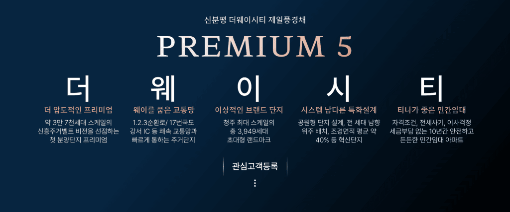 ☰사업개요PREMIUM개발환경단지안내평면안내장기민간임대방문예약 이 양식을 작성하려면 브라우저에서 JavaScript를 활성화하십시오.성함 *고객님의 성함을 입력해 주세요연락처 *연락받으실 휴대폰 번호를 입력해 주세요거주지역 *예) 청주시 청원구문의 내용궁금한 문의사항을 남겨주세요 성함 안내 및 개인정보 수집 및 이용 안내 *개인정보처리방침에 동의합니다[개인정보처리방침 보기]문의하기 사업개요 브랜드 PREMIUM 입지환경 개발호재 단지안내 평면안내 장기민간임대 이 양식을 작성하려면 브라우저에서 JavaScript를 활성화하십시오.성함 *고객님의 성함을 입력해 주세요연락처 *연락받으실 휴대폰 번호를 입력해 주세요거주지역 *예) 청주시 청원구 내용 연락처 문의 문의 내용궁금한 문의사항을 남겨주세요개인정보 수집 및 이용 안내 *개인정보처리방침에 동의합니다[개인정보처리방침 보기]문의하기 이 양식을 작성하려면 브라우저에서 JavaScript를 활성화하십시오. 수집 문의 안내 성함 *고객님의 성함을 입력해 주세요연락처 *연락받으실 휴대폰 번호를 입력해 주세요거주지역 *예) 청주시 청원구문의 내용궁금한 문의사항을 남겨주세요개인정보 수집 및 이용 안내 *개인정보처리방침에 동의합니다[개인정보처리방침 보기]문의하기사업개요 브랜드 입지환경 PREMIUM 장기민간임대주택 개발호재 단지안내 평면안내 이 양식을 작성하려면 브라우저에서 JavaScript를 활성화하십시오.성함 *고객님의 성함을 입력해 주세요연락처 *연락받으실 휴대폰 번호를 입력해 주세요거주지역 *예) 청주시 청원구문의 내용궁금한 문의사항을 남겨주세요 수집 거주지역 개인정보 개인정보 수집 및 이용 안내 *개인정보처리방침에 동의합니다[개인정보처리방침 보기]문의하기